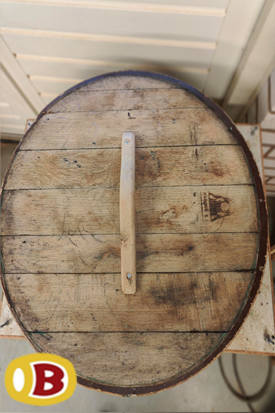 Houten deksel met handvat is geschikt voor de eikenhouten regenton/wijnvat van 225 tot 300 Liter